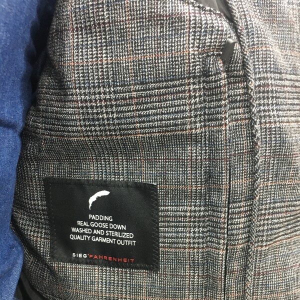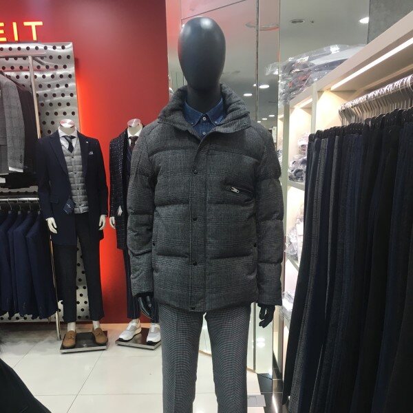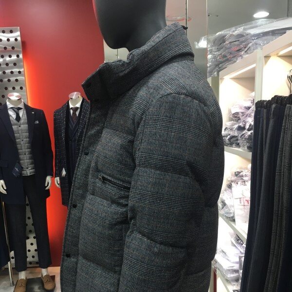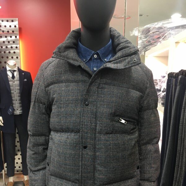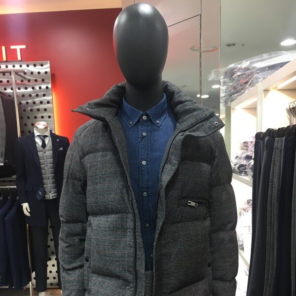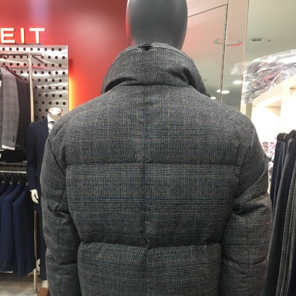 체크원단으로 포인트를 준 짧은 기장의 여유있는 실루엣의 구스다운점퍼입니다.