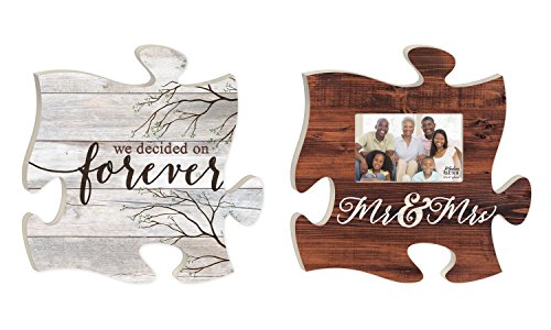 Mr. & Mrs. Decided on Forever Puzzle Piece Interlocking Wall Plaque and Photo Frame Set of 2