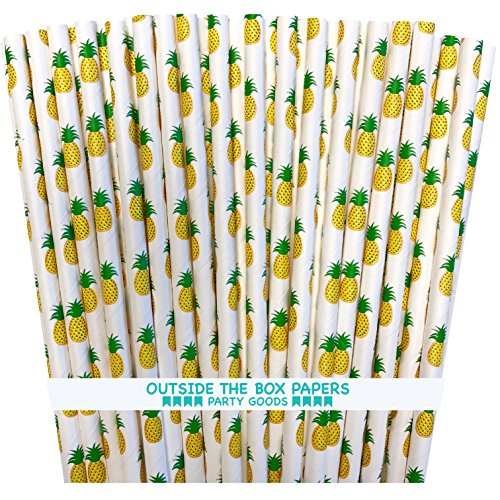 Outside the Box Papers Pineapple Theme Paper Straws 7.75 Inches 100 Pack Yellow, Green White