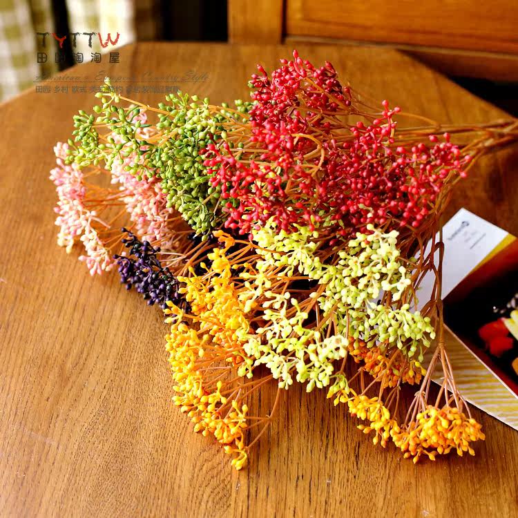 热卖美式欧式乡村田园家居装饰品塑料仿真花假花粒粒花