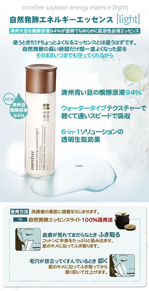 【韓国直送】 韓国コスメ innisfree Soybean Energy Essence Light (イニスフリー 自然発酵エネルギーエッセンス ライト/150ml)