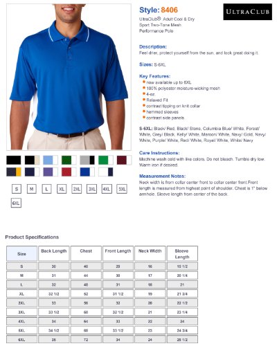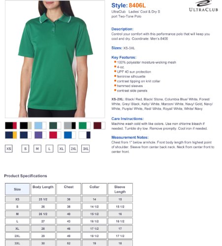 -. Title : UltraClub 8406L Ladies' Cool & Dry Sport Two-Tone Polo Golf Shirt