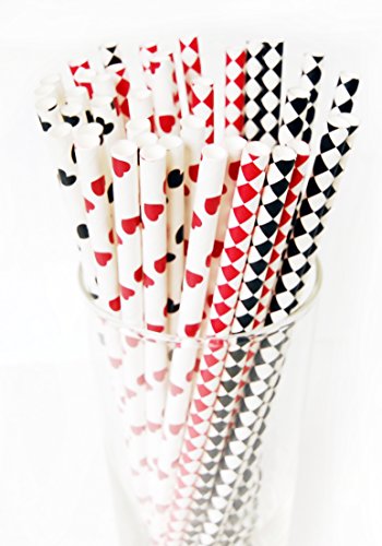 Black and Red Heart, Diamond Straw Combo Biodegradable 7.75" Pack of 100