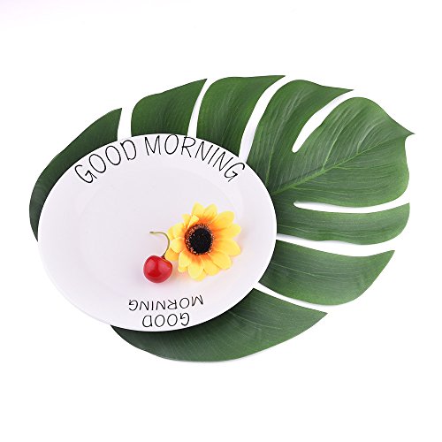 -. Feature : Package included: 48pcs tropical plant leaves: Large - 14"/35cm - 12ct, Medium - 8"/20cm - 24ct, Small - 6"/15cm - 12ct / Made of soft lightweight polyester material, look like real leaves, comfortable touch for durable and reusable / Aloha, TIKI party table decorations, good for a rain forest themed event or BBQ party, create an authentic tropical island atmosphere / Easy to use, could be as table decor, or stick them on walls to decorate your bedroom, living room or for DIY / 3 different sizes of leaves in one package, make them a stunning choice for party or home décor