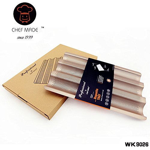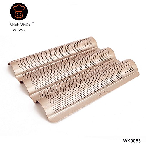 (CHEF MADE)/Kitchen Dining/Cookware Baking/DIRECT FROM USA/Baguette tray, Chef Made Nonstick French Bread Perforated Baguette Pan Wave Loaf Baking Mold, 1...