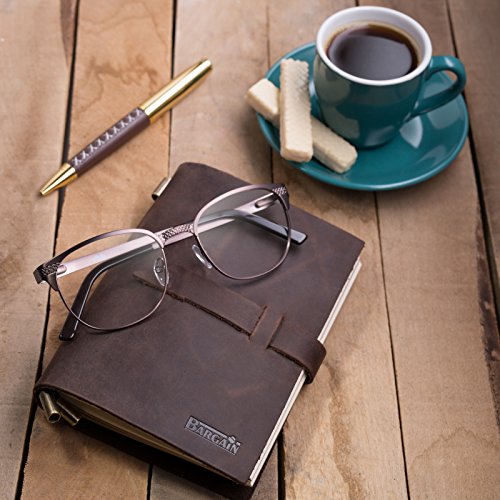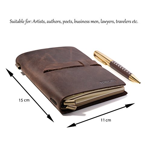 ➤BEAUTIFULLY CRAFTED & UNIQUE: Soft & Supple Dark Brown Genuine Water Buffalo Leather. A lovely distressed vintage style with a gorgeous, real leather scent.Handmade, no two are quite the same. ➤ NEVER LOSE YOUR PEN AGAIN with theconvenient penholder clip, which holds the stylish pen and fits securely onto the side of the notebook – so that you’ll never have to rummage around again for something to write with. The metal clip can also serve as a bookmark.