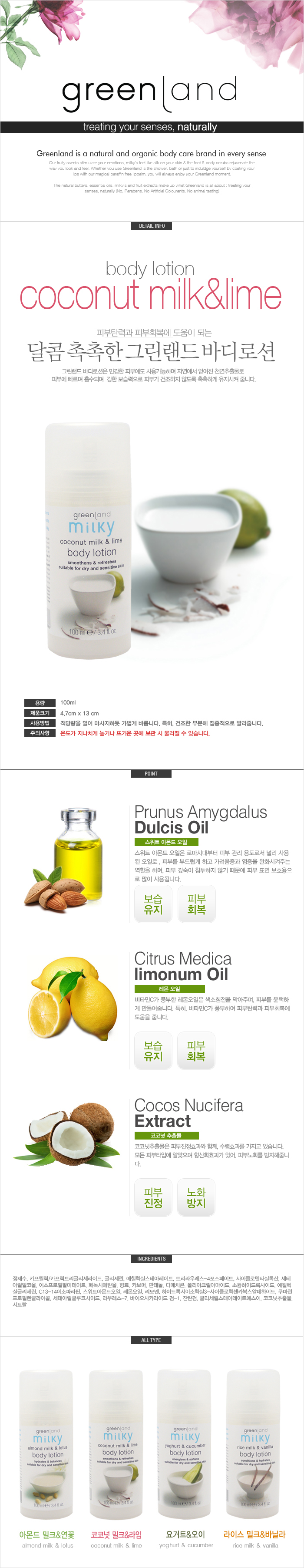 정제수,카프릴릭/카프릭트리글리세라이드,글리세린,에칠헥실스테아레이트,트리라우레스-4포스페이트,사이클로텐타실록산,세테아릴알코올,이소프로필팔미테이트,페녹시에탄올,향료,카보머,디메치콘,폴리아크릴아마이드,소듐하이드록사이드,에칠헥실글리세린,C13-14이소파라핀,스위트아몬드오일,레몬오일,리모넨,하이드록시이소헥실3-사이클로헥센카복스알데하이트,쿠마린프로필렌글라이콜,세테아릴글루코사이드,리우레스-7,바이오사카라이드 검-1,잔탄검,글리세릴스테아레이트에스이,코코넛추출물,시트랄 |