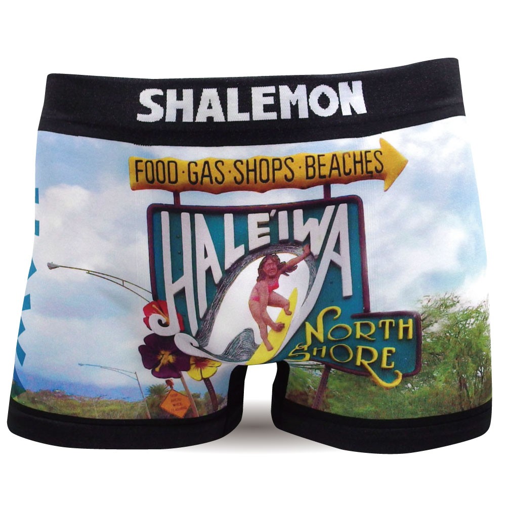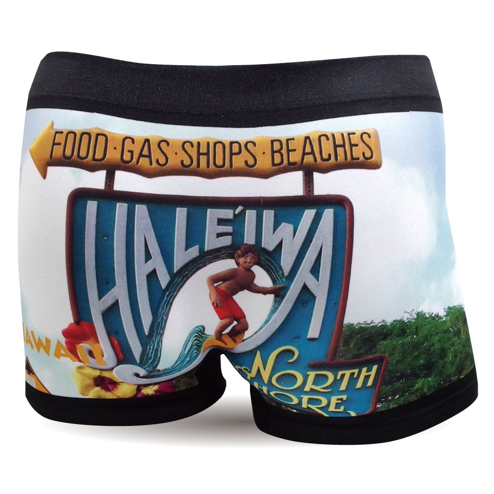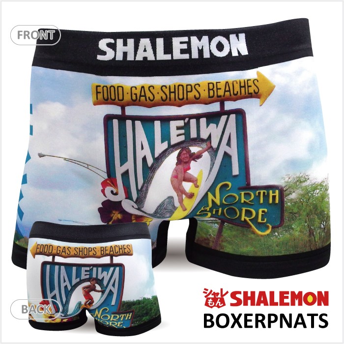 ハワイ ノースショアの有名な看板を撮影してデザインした立体成型シームレスのカッコいいボクサーパンツです。まるで水着のごとく派手でカッコいいので、サーフィン後の、海での着替えにも重宝します。