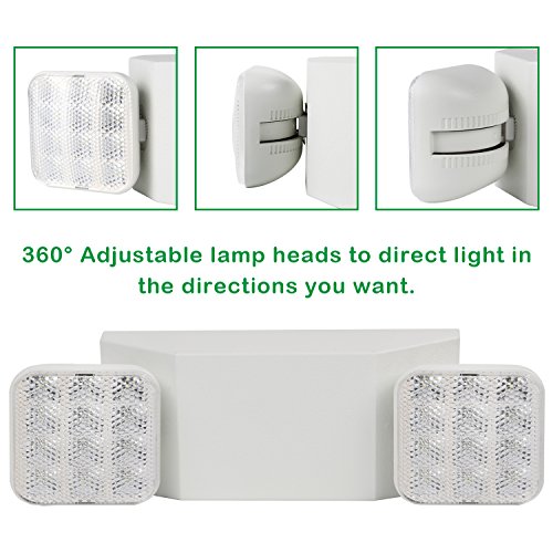 Hykolity LED Adjustable Two Head Wall-Mount White Emergency light Fixture with Battery Back-up - Pack of 6