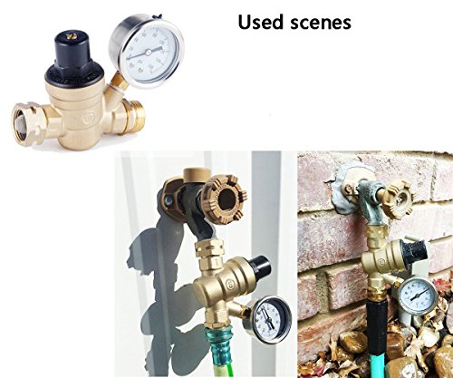 Water Pressure Regulator, Brass Lead-free Adjustable RV Water Pressure Reducer manual operation pressure regulating valve DN20 1.6mpa with Gauge, Includes Inlet Screened Filter.By Woodlev