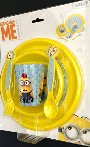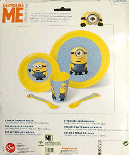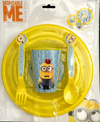 Minions Children's 5 piece dinner set. Adorable Minions Plate, Bowl, Cup, Fork and Spoon. Perfect for lunch and dinner time. Not for Microwave.