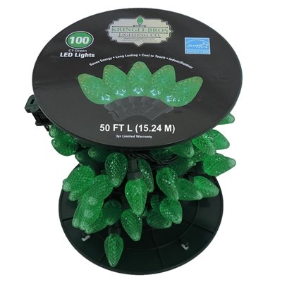 C7 Green LED Christmas Light Strand on Spool- 100 Lights - 50 ft long - 6" Spacing of LED's