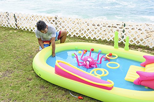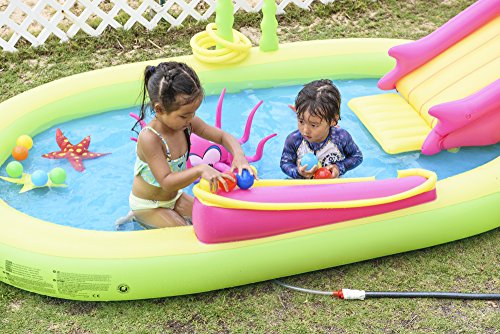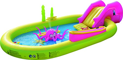 Jilong Sea Animal Pool 298x165x55 cm Kinderpool Planschbecken Kinder Schwimmbecken mit Rutsche Wasserspruher Wasserspritze mit Gartenschlauch-Anschluss und diversem Wasserspielzeug