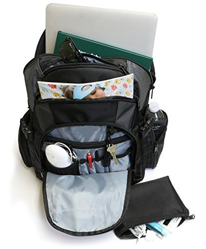 -. Feature : Suspended laptop compartment fits up to 15.4" computers / Thick padding protects contents and reduces fatigue / Expandable compartment with room to grow / Dedicated sunglasses and small items pocket / Bonus gear pouch is included