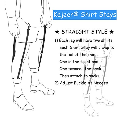 Binding : Apparel Product Description Kajeer SHIRT STAY IS SUPPOSED TO KEEP SHIRTS TUCKED IN WITHOUT YOU HAVING TO ADJUST YOUR SHIRT OR WORRY ABOUT IT BECOMING UNTUCKED DURING THE DAY! How to use Straight Style Shirt Stays Holder ? ? ? ★ Each leg will have two shirts. Each Shirt Stay will clamp to the tail of the shirt. One in the front and One towards the back. Then attach to socks. Adjust Buckle As Needed! Why choose our Kajeer Shirt Stays Holder ? ? ? This is a very good question! ★ (1) Softer than the competition, our men's shirt stays won't irritate your skin! They're also far more comfortable than a shirt stay belt and other shirt holder options! ★ (2) Our mens shirt stays are so easy to use! You can have these sock suspenders on and off in 30 seconds or less, making them great police shirt stays and other uniform shirt stays to wear on the job! ★ (3) Stretchable elastic on our shirt stays holder can reach to your feet without snapping or breaking! Our shirt stays for men and women are made to stand the test of time! ★ (4) 100% SATISFACTION GUARANTEED 30 days money back guaranteed! 24 hours custmer support! If you have any problems, please feel free contact "Jerrybaby"! Thanks!
