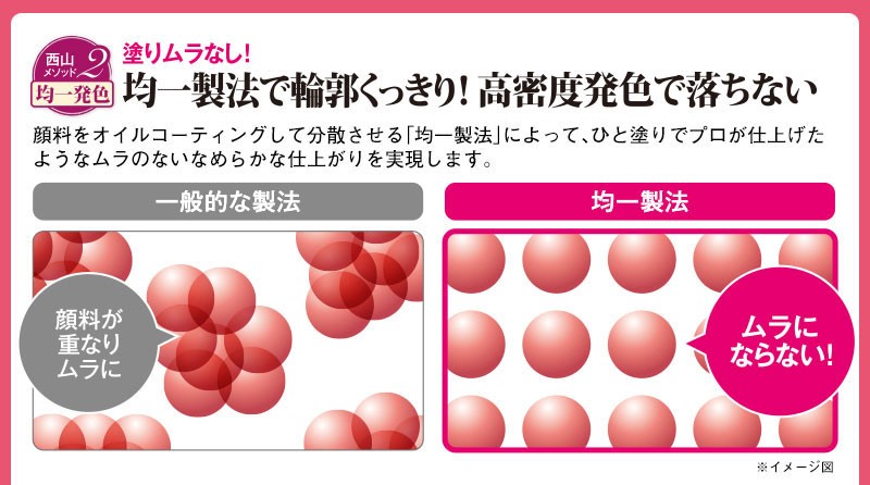 | ご使用方法 | ●直接、又はお手持ちのリップブラシに取り、唇に塗ってください。 1.下唇の口角から中央に向かって塗ります。 2.上唇の口角から中央に向かって塗ります。 |