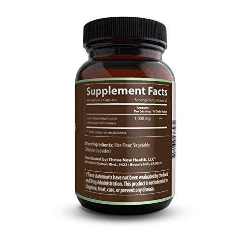 Thrive Now Health - Lions Mane Mushroom 1000mg. | Enhances Cognition Function | Memory Recall | Heart Health | Immune System | 2 veggie caps per...