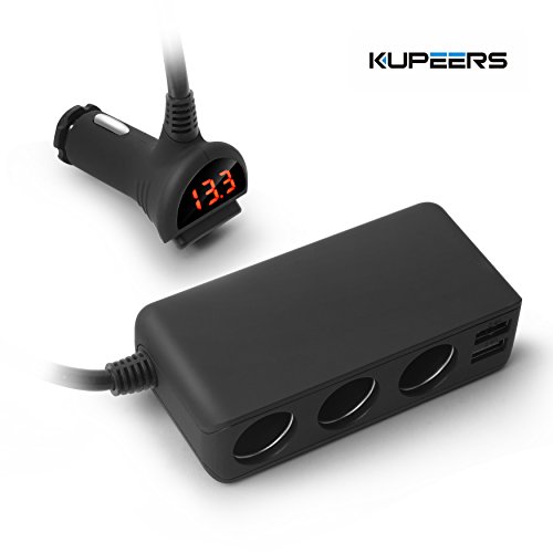 -. Feature : ★KUPEERS Advantage★:Three 12V/24V cigarette lighter sockets (DC outlets) provide a total power of up to 120W, perfect for simultaneously use of multiple car appliances 4-Port USB charging ports with 6.5A total output enables you to rapidly charge 4 devices simultaneously. / ★SAFE POWER SWITCH & LED DISPLAY★:Designed with on/off power button for energy-saving and devices protection. The LED display helps monitor your car battery, when the voltage is under 12V, warning with flashing number on the display / ★SAFETY & PROTECTION DESIGN★: Smart IC for auto-voltage detection, over-voltage and over-current safety protection to avoid risk to the charged devices. Car charger rubber grip for stable charging contact.3 socket cigarette lighter adapter has Built-in Safe fuse and Intelligent circuit design, avoids short circuiting / ★MORE PORTABLE★: 39.5 inches (95cm) USB Car Charger Cable, long distance connection, makes it easy for friends in the backseat to charge their devices,enough for using Handhold Vacuum Cleaner, GPS, Electric Air Pump, Car Refrigerator,Android samsung apple iPhone 5 5s 6 6s 7 plus etc.; suitable for most cars, Father's gift, usb cigarette lighter socket, 12v dc splitter / ★High Safety Standards★:certified with CE, FCC & RoHs , Dad's gift, cigarette lighter power adapter dc outlet splitter with usb ensure complete protection for you and your devices.has 18-month warranty; if there is any quality problem please feel free to contact us, we will do our best to solve .