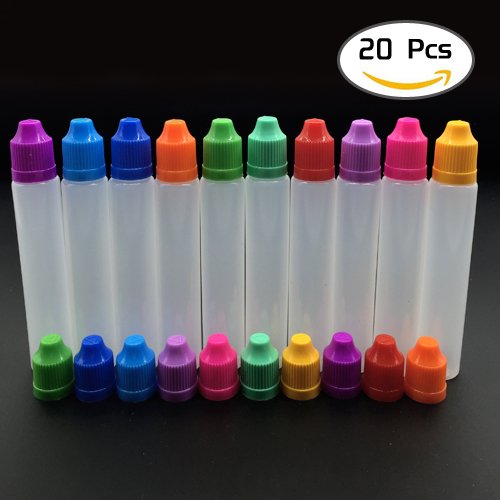 OTRMAX 30ML LDPE Squeezable Dropper Bottle with Childproof Cap & Long Thin Tip 20 Pcs (Mixed Colors)