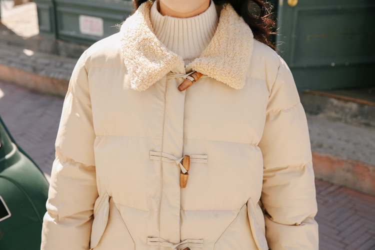 ジップアップラインにトグルをあしらったダッフル風のデザインがポイントに!