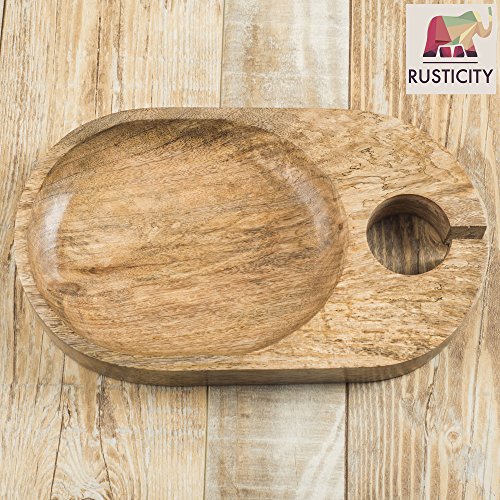 Studio : Rusticity Publisher : Rusticity Product Description If you want to wow your guests, bring out this Cocktail Plate at your next gathering. This compact appetizer plate hold your wine and appetizers in one convenient unit. Made of gorgeous Mango hardwood, these plates are functional and beautiful due to their rich, shimmering colors. Whether you're hosting a cocktail party, a wedding reception, or a family BBQ, Mango wood dinnerware is up for the challenge. This cocktail plate have been handcrafted to ensure you get the best quality product possible. No matter what you plan to serve, mango wood is perfect for any culinary occasion since it offers a unique combination of durability and environmentally-friendliness. Wood products should never be washed in the dishwasher.