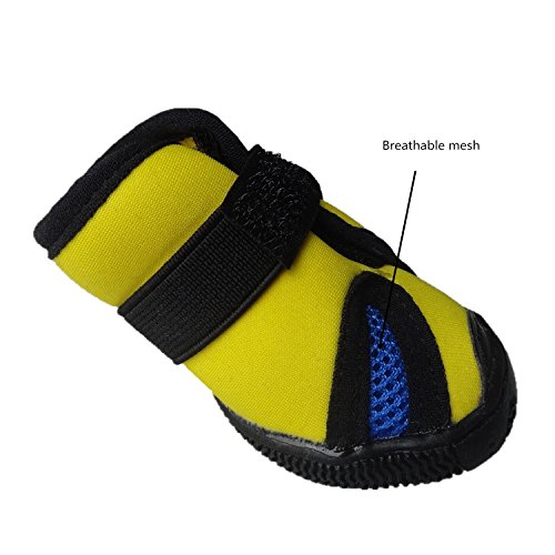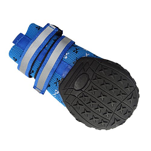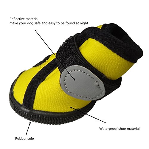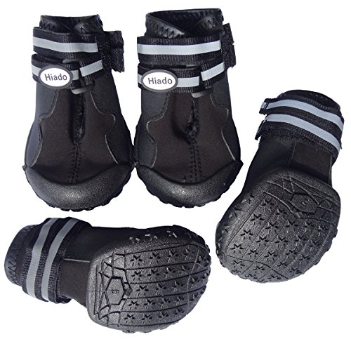 -. Binding : Misc. -. Brand : Hiado -. Feature : Waterproof shoe fabric: we can never worry if dog walk in wet place or run in the rain / Breathable Mesh design make shoe inside dry and well air flow / Velcro straps make the shoe be easily dressed in seconds and tightly stay on the paws / Reflective materials on velcro make your dog safe and easy to be found at night -. Label : Hiado -. Manufacturer : Hiado -. Model : CR1000 -. PackageQuantity : 1 -. ProductGroup : Pet Products -. ProductTypeName : PET_SUPPLIES -. Publisher : Hiado -. Studio : Hiado -. Title : Hiado Waterproof Dog Shoe Pet Boots with Anti Slip Rubber Soles for All Weather
