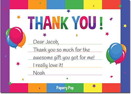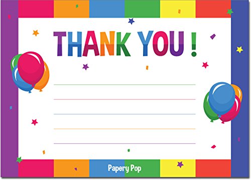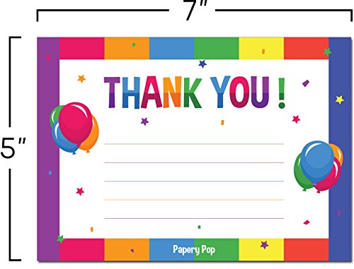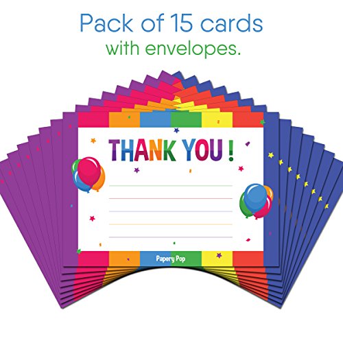 Thank You Cards With Envelopes (15 Count) - Kids Birthday Party, Baby Shower - Greeting Note Cards - Colorful Rainbow Theme