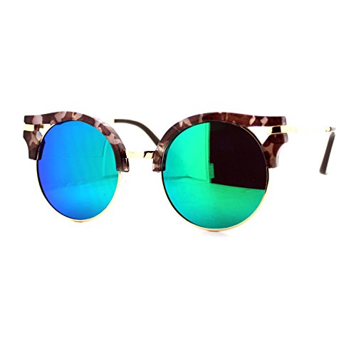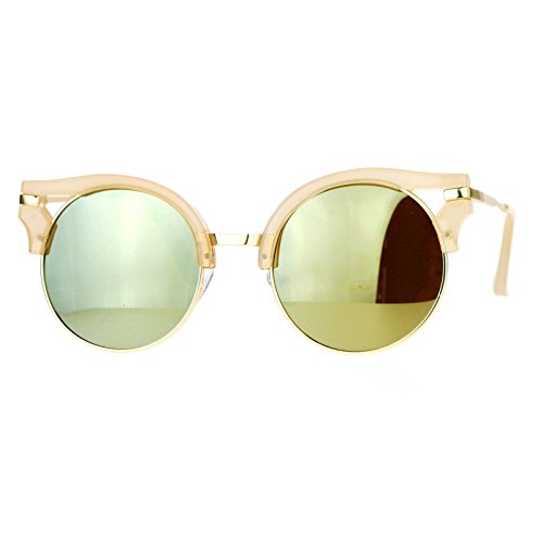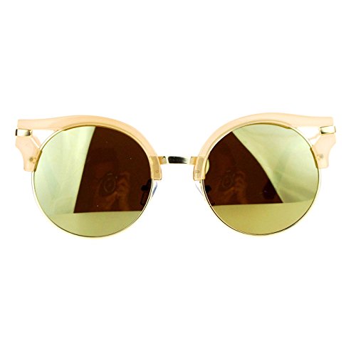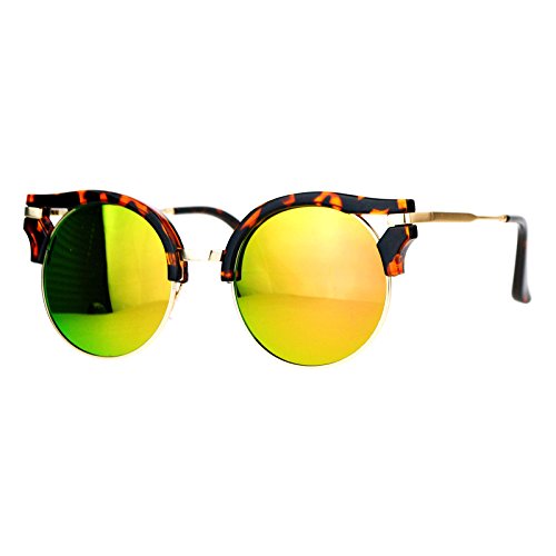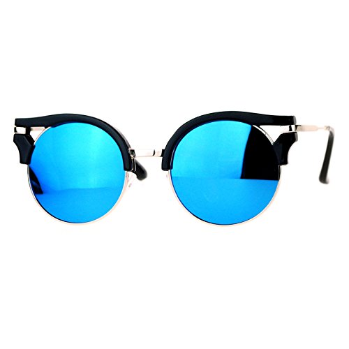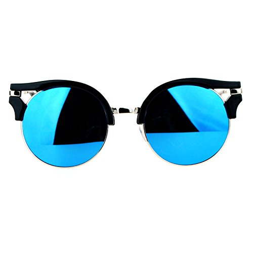 | (PASTL)/Accessories/Eyewear/DIRECT FROM USA/Womens Fashion Sunglasses Wing Topped Round Circle Frame Mirror Lens |