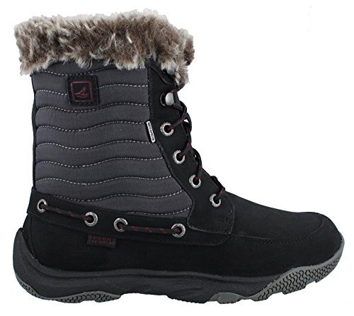 Women's Sperry, Winter Harbor Waterproof Boots These waterproof boots will keep you looking great even in the wet weather Waterproof leather and fabric upper with logo and grommets Lace up closure for a secure fit Fabric lining Cushioned footbed for added comfort 6 1/2 inch boot shaft height with a 5 inch opening Rubber outsole with wave siping for wet/dry tractionFeature