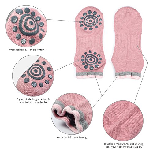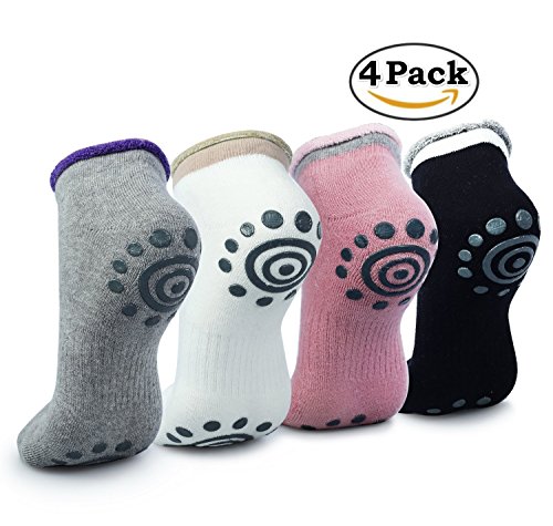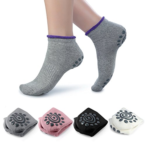 iEase Non-slip Yoga Pilates Barre Sports Cotton Socks for Women (4 Pairs)