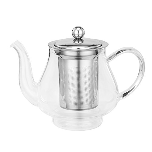 -. Title : VonShef 25-Oz Glass & Stainless Steel Infusion Tea Pot Loose Tea Leaf Infuser Teapot