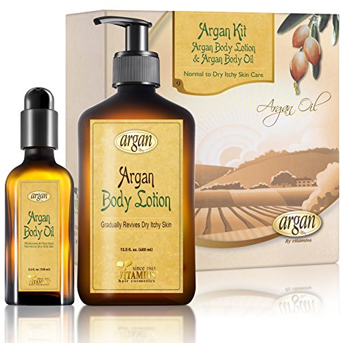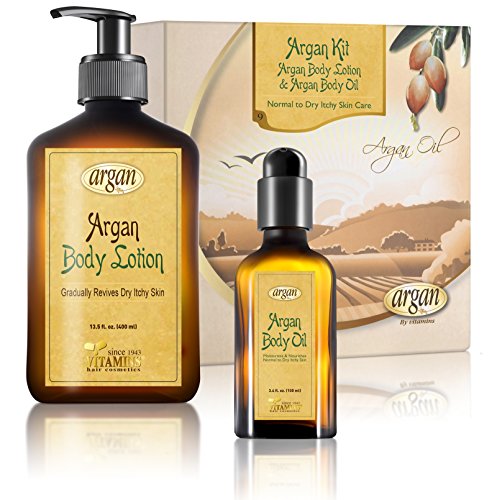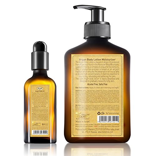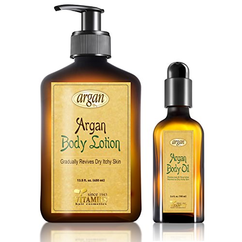 -. Feature : Unique Body Dry Skin Care Kit - Gentle Argan Body Oil Natural Herbal Extracts Complex with an Easily Absorbed Light Gentle Argan Body Cream Lotion for Dry Skin, Enriched With Vitamin A, Vitamin E and Antioxidants / Skin Moisturizer Treatment Therapy - Revives, Renews, Calms & Repairs Sensitive & Dry Skin to Obtain Smooth, Soft and Young Vital Skin Appearance / Reputable Established Company Since 1943 - This Kit Argan Oil Based Products are Manufactured for More Than 20 Years / Alcohol Free, Sulfate Free , Not Tested On Animals and Cruelty Free - Your Skin will Look & Feel Smoother, Softer, Vital, Healthy & Fresh / The Combination of the Fast Absorbing Light Body Lotion with the Hydrating Body Oil Ensures to Lock in Moisture and Promote a Rich Vital Youthful Skin Appearance