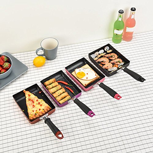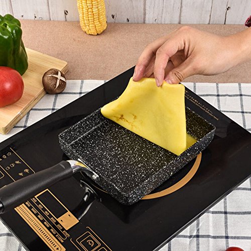 MyLifeUNIT Japanese Non-stick Omelette Pan Tamagoyaki Egg Pan adapts heavy-duty Al-Mn alloy for durable use, Manfan stone coating which is no harm to human body. An unique sloped shape allows for easy flipping of omelets, sandwiches, and pancakes. Multi-purpose, which could make multiple formula with the same pan mould. Could be used on induction cooker, gas stove, ceram stove or furnace. Your best choice for cooking Japanese Tamagoyaki Omelette.