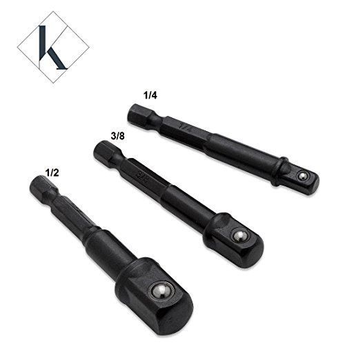 3-Piece Impact Socket Adapter Power Extension Bit Set For Drills, -Hex Shank Fits All Drills Turns Any Power Drill Into A High Speed Power Nut Driver- 3 Sizes, 1/4" 3/8” 1/2” - By Katzco