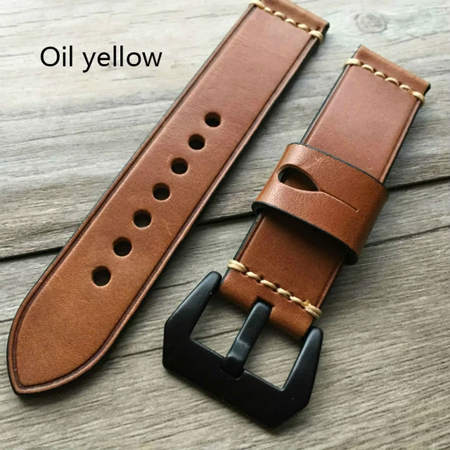 | [해외]2017 특별 손 소 가죽 스트랩 파네 라이 20 미리메터 22 미리메터 24 미리메터 26 미리메터 패션 남성과 여성 가죽 손목 노란색 녹색 브라운 |