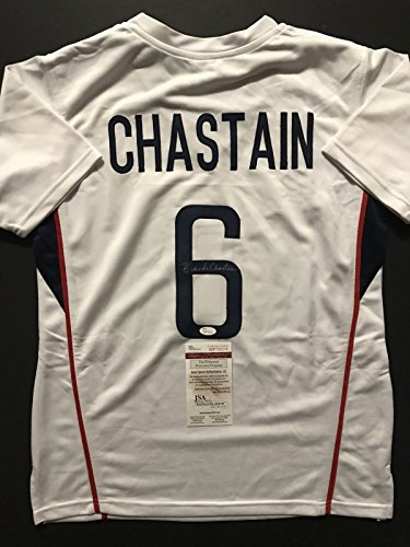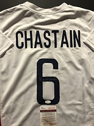 Autographed/Signed Brandi Chastain White Soccer Team USA World Cup Jersey JSA COA