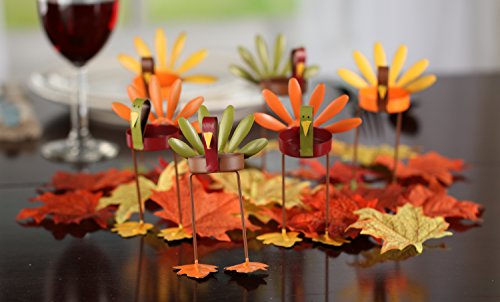 Product DescriptionFactory package set of 6 Warm Autumn Painted Metal Turkey Tealight Candle Holders and a package of 120 leaves.0