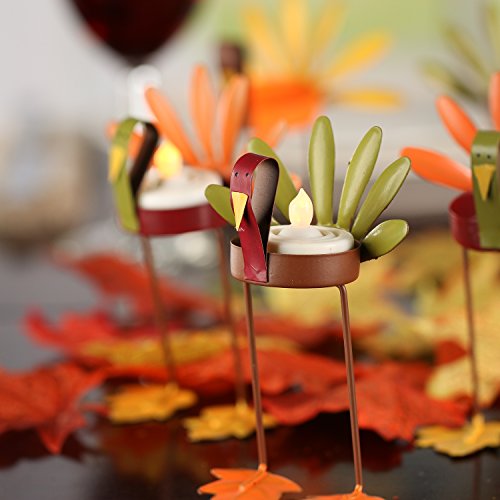 Factory Direct Craft Set of 6 Warm Autumn Painted Metal Turkey Tealight Candle Holders 120 Pa...