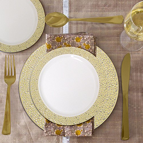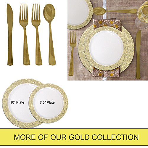 These ivory gold lace plates look like real china but they are disposable and convenient. Combine with our Premium Disposable high quality gold cutlery set asin B01LZT2N0D for the perfect party or event. ( cutlery set not included).