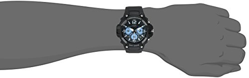 Heavy-duty watch with black strap featuring chronograph and stop watch functions