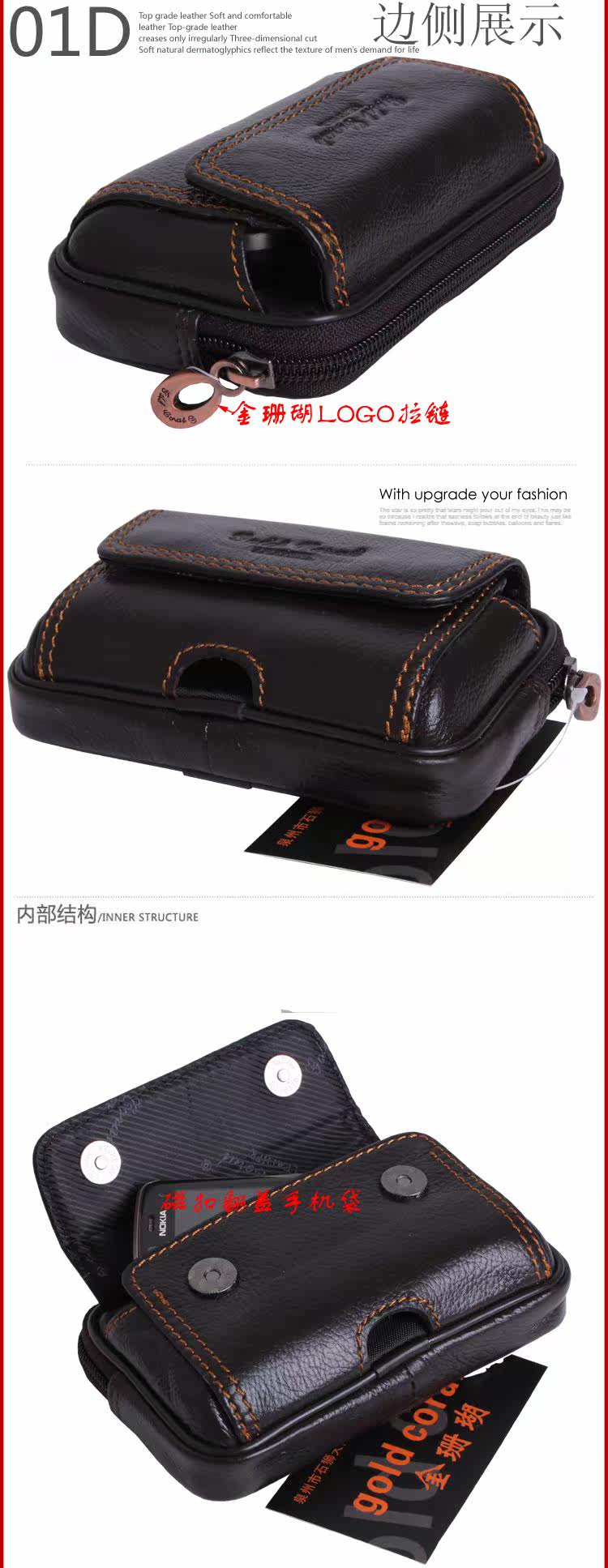 男士真皮腰包苹果iphone4手机包牛皮腰包男穿皮带腰包3156