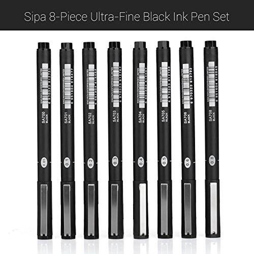 Sipa 8-Piece Ultra Fine Black Ink Pen Set, Fine Line Drawing Pen for Illustration, Sketching, Drawing, Writing, etc.-Lightwish