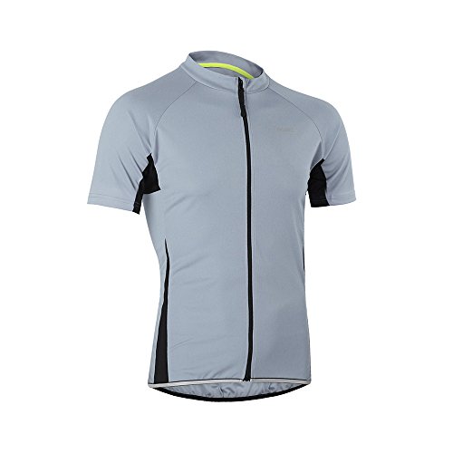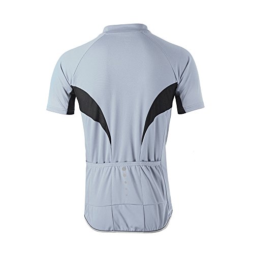 ARSUXEO Men's Slim Fit Cycling Jersey Short Sleeves Bike Bicycle MTB Shirt Light Gray Size Medium
