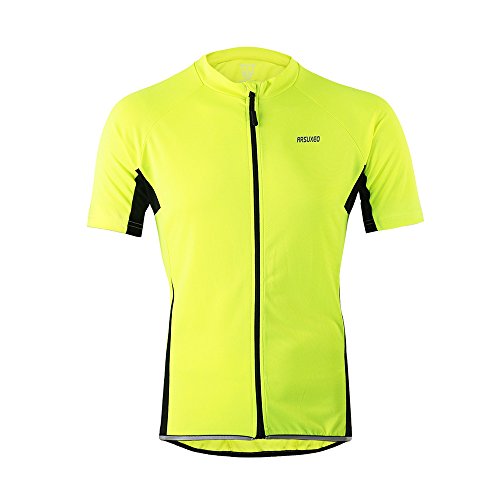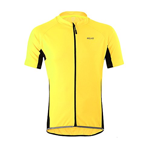 ARSUXEO Men's Slim Fit Cycling Jersey Short Sleeves Bike Bicycle MTB Shirt Yellow Size large