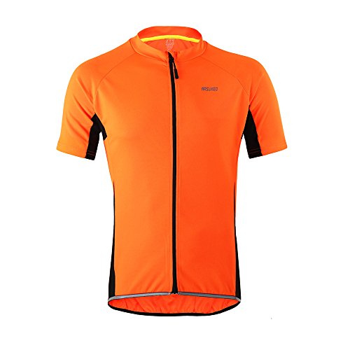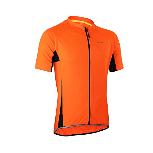 ARSUXEO Men's Slim Fit Cycling Jersey Short Sleeves Bike Bicycle MTB Shirt Orange Size Medium