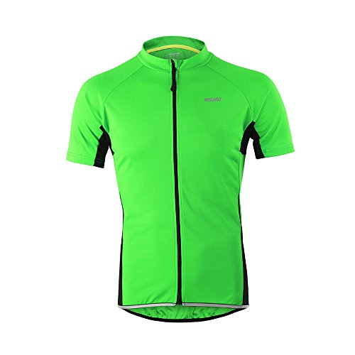 ARSUXEO Men's Slim Fit Cycling Jersey Short Sleeves Bike Bicycle MTB Shirt Green Size Medium