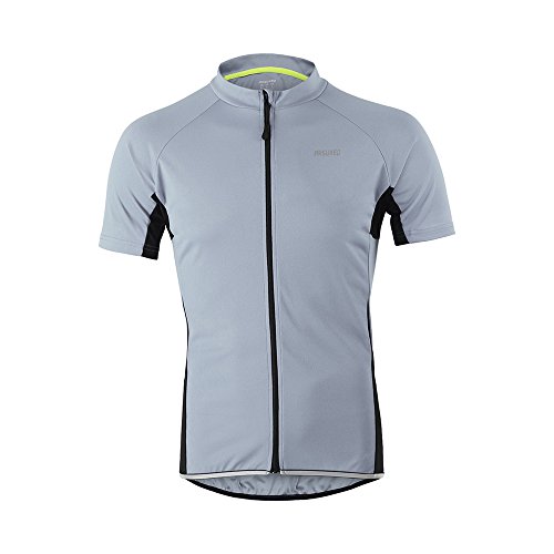 ARSUXEO Men's Slim Fit Cycling Jersey Short Sleeves Bike Bicycle MTB Shirt Gray Size large