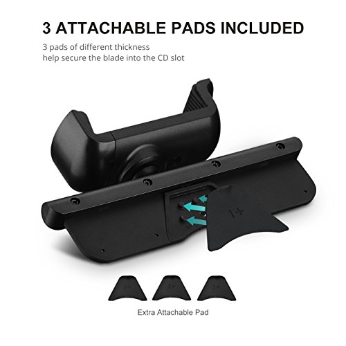 Extra Attachable Pad:Three extra attachable pads of different thickness help secure the blade into the CD slot and protect your CD slot from damage. Note: to protect CD slot, please detach the car mount monthly for a good check.