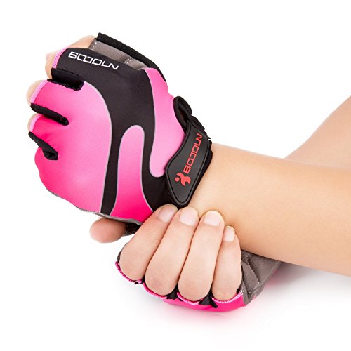 BOODUN Cycling Gloves with Shock-absorbing Foam Pad Breathable Half Finger Bicycle Riding Gloves Bike Gloves B-001, Pink, Small
