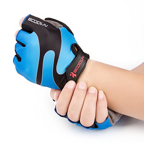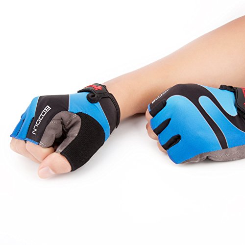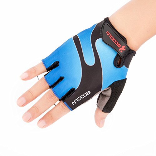 BOODUN Cycling Gloves with Shock-absorbing Foam Pad Breathable Half Finger Bicycle Riding Gloves Bike Gloves B-001, Blue, Small